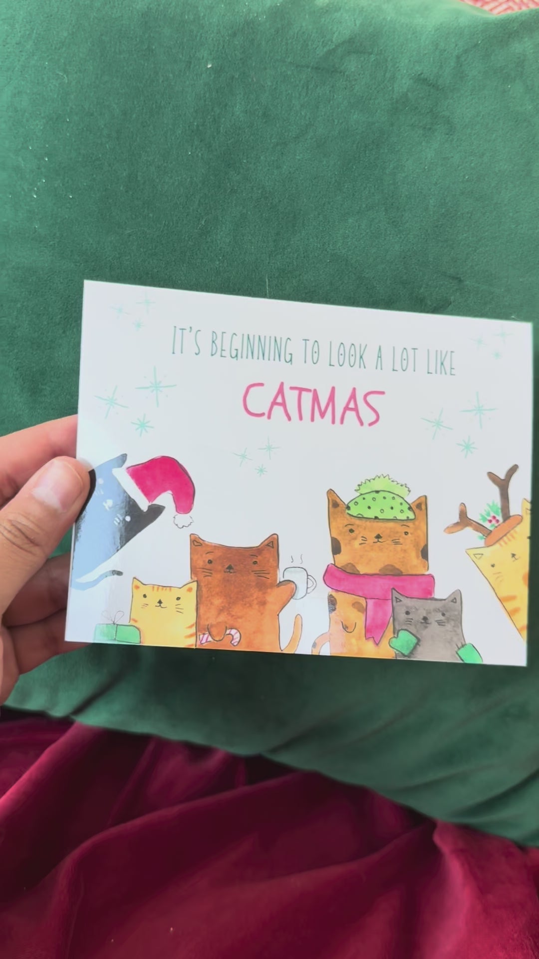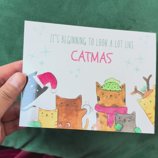 It's beginning to look a lot like Catmas | Cat-themed 4x6 holiday card, blank inside